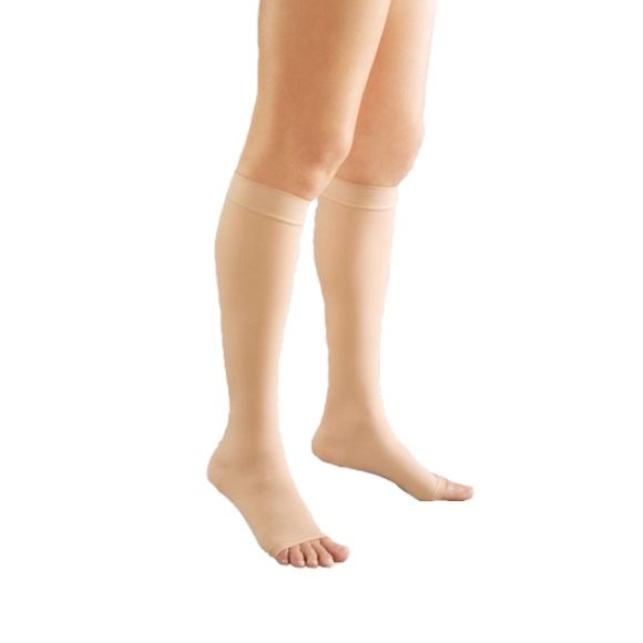 Гольфы компрессионные VENOTEKS женские (26-32 мм.рт.ст.) плотные с открытым носком арт.2C113 VENOTEKS Описание Гольфы компрессионные VENOTEKS женские (26-32 мм.рт.ст.) плотные с открытым носком арт.2C113 Компрессионные гольфы VENOTEKS уменьшают отеки и интенсивность болевых ощущений и судорог, предотвращают развитие осложнений и прогрессирование заболеваний. Гольфы изготовлены из гипоаллергенных и безопасных материалов, обеспечивают активный воздухо и влагообмен, а также комфортное ношение. Открытый носок гольфов облегчает их надевание, при использовании дополнительного шелкового носочка. 2 класс компрессии - 26-32 мм рт. ст. Состав: 80% нейлон, 20% эластан. Показания Хроническая венозная недостаточность с расширенными поверхностными венами; Выраженные отеки ног, сохраняющиеся после ночного отдыха; Наличие невоспаленных уплотнений и варикозных узлов на венах; Множественные сосудистые звездочки или выраженная венозная сетка, занимающая площадь более 1/3 голени или бедра; Состояния после склеротерапии и флебэктомии; Острый тромбофлебит; Посттромбофлебитическая болезнь; Подготовка к оперативному вмешательству на венах нижних конечностей; Профилактика тромбоза глубоких вен в группах риска. Особенности Физиологически распределенная градуированная компрессия: лодыжка 100%, середина икры 80%; Параметры компрессии медицинских трикотажных изделий заложены в сложной современной технологии их изготовления; Компрессия точно рассчитана, дозирована и измерена в миллиметрах ртутного столба; Гарантированное сохранение компрессионных свойств в течение 6 месяцев ежедневного использования; Производятся из современных, безопасных, гипоаллергенных материалов, обеспечивающих активный воздухо- и влагообмен. LatexFree; Надевать компрессионные гольфы следует утром, до появления отеков ног. Если Вы снимаете компрессионный трикотаж в течение дня, то снова надевать его нужно после 10-15 минутного отдыха ног в возвышенном положении. Для предотвращения повреждения трикотажного изделия при использовании нужно постоянно ухаживать за ногтями и кожей рук и ног. Подбор размеров Обратите внимание! При подборе размера гольфов, чулок и колгот руководствуйтесь приведенными здесь таблицами. Измерения нужно проводить утром, до появления отеков на ногах. T – окружность талии H – окружность бедер g – окружность бедра (на 5 см ниже ягодичной складки) d – окружность под коленной чашечкой (на два пальца ниже коленного сустава) c – окружность икры (в самом широком месте) b – окружность надлодыжечной области (самая тонкая часть ноги) a – размер стопы (обуви) A–D – длина от уровня d до пятки A–G – длина от уровня g до пятки Таблица подбора размеров 2C113ors /upload/iblock/fcf/fcf00c3fcca0f67ca6b7c36ed69ba95c.jpg