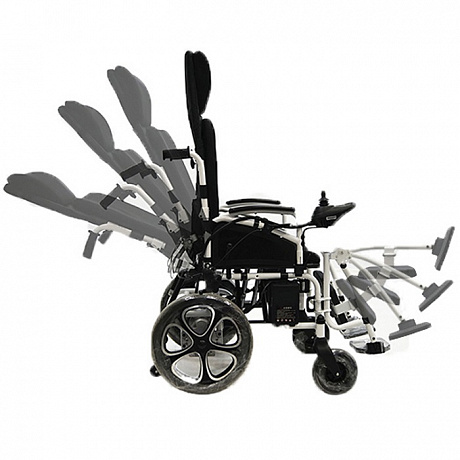 Электроприводное кресло-коляска с возможностью перевода сиденья из сидячего в горизонтальное положение для отдыха, или проведения процедур. Возможность без посторонней помощи в считанные секунды организовать полноценное лежачее место экономит силы и нервы больного за счёт отсутствия передислокаций в коляску и из неё.