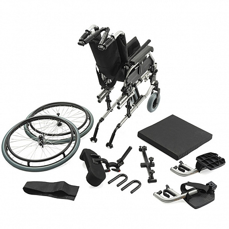 - Съемные, откидные, с регулировкой по высоте подножки и откидные подлокотники обеспечивают комфортную посадку пользователя.