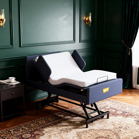 Высота ложа плавно регулируется электроприводом, позволяя без усилий подобрать идеальное положение. В нижнем положении кровать обеспечивает безопасность при использовании, а в верхнем - значительно облегчает уход за лежачими пациентами, а также замену постельного белья, минимизируя нагрузку на спину.