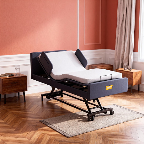 MET GABBY – это многофункциональная электрическая кровать для дома, оснащенная ночной подсветкой, беспроводным пультом и функцией запоминания положений. Эта кровать идеально подходит для людей старшего возраста – её можно использовать как дома, так и в лечебных заведениях, включая дома престарелых.