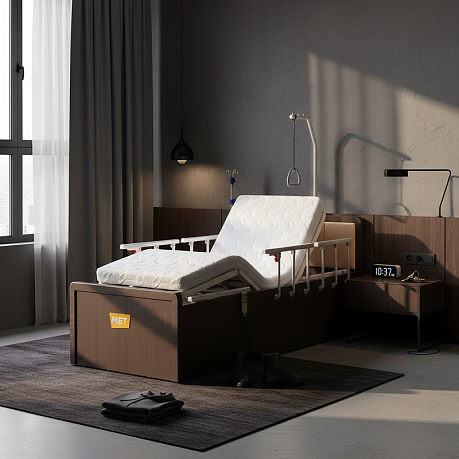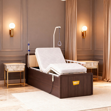 МЕТ OMEGA-7 HOME – это медицинская четырехсекционная кровать с электроприводом. Модель разработана для комфортного использования пожилыми людьми и пациентами — как дома, так и в специализированных учреждениях. Отличительной особенностью этой модели является современный дизайн, который гармонично вписывается в домашний интерьер, создавая уютную атмосферу.