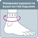 Сантиметровой лентой (плотно, но не утягивая) измеряется окружность выше костей лодыжки.
