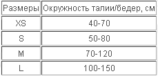 Таблица размеров