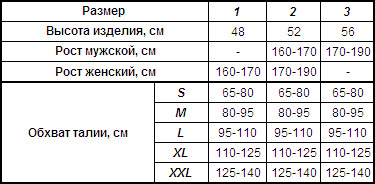 Таблица размеров